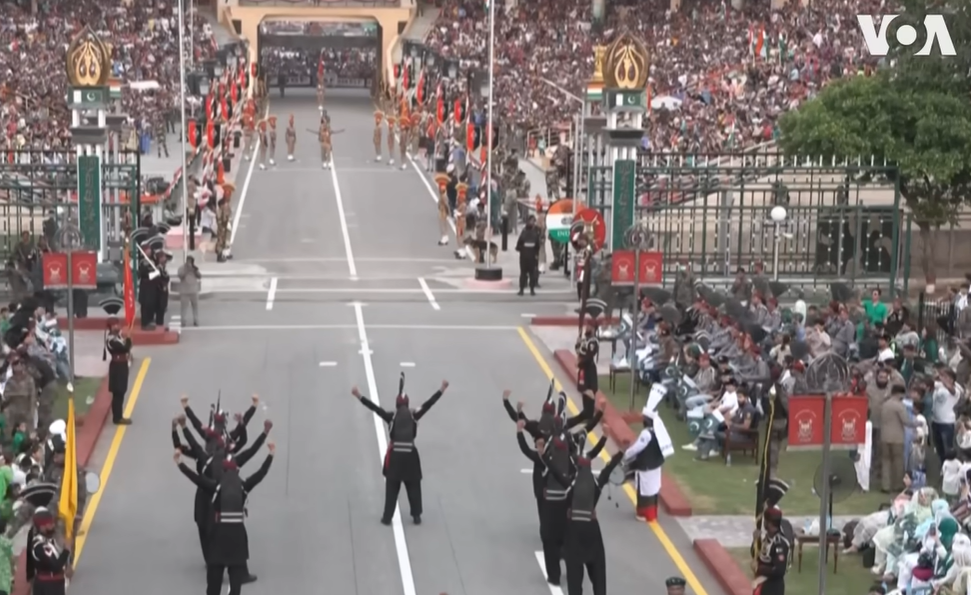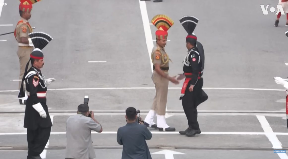 Té lloc rigorosament cada dia de l'any, just abans de la posta de sol, i funciona com un ritual perfectament cronometrat. El procés comença amb una desfilada militar intimidatòria on els soldats de tots dos costats marxen cap a la reixa amb moviments agressius i exagerats, aixecant les cames gairebé fins al front (el conegut com a pas de l'oca) i colpejant fort el terra per demostrar força davant els crits de les grades. Uniforme negre (Pakistan), uniforme clar (Índia).
